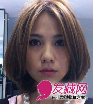 中分的中发bobo头,发尾打造内扣的感觉,显灵动优雅,同时中分的刘海显气质瘦脸,亚麻色的染发靓丽时尚。