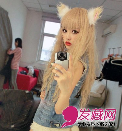 卡哇伊的动漫非主流发型,可爱卖萌是冬季街头的王道,当然这样的妆化可以省略。