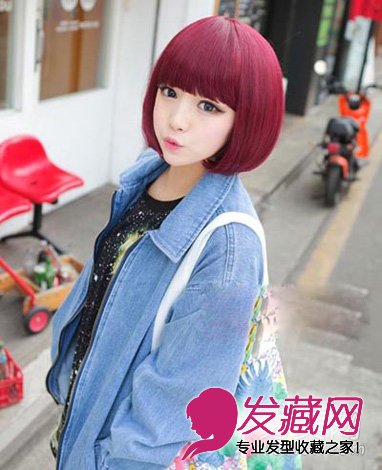 个性时尚的红色齐刘海BOB头,尽显芭比的女孩味道。