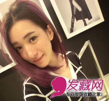 齐肩的中发发型,散发慵懒感小女人味道,紫色系染发,非常的显潮流养眼。清淡的妆容更纯美动人!