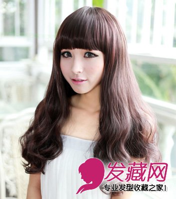 韩版时尚齐刘海长卷发,尾部微蓬松的卷发,很自然,十分洋气的一款。