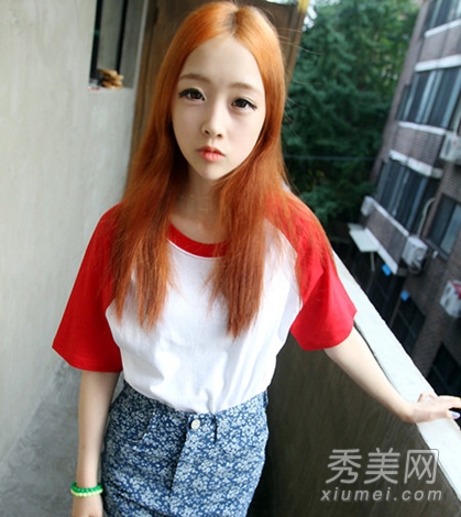 中分的橘红色的长直发发型,这一款发型相当的时尚潮流。这款颇有点韩系非主流味道的长发,是不是非常的显眼呢?