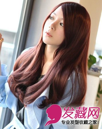 浪漫优雅的棕红色披肩长发,微卷的发尾散发着迷人气息。综合了棕色的低调和酒红色的优雅,这款染发的颜色很少见却也很惊艳的。