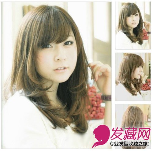 斜刘海加上少量的碎发内扣式烫发的感觉修颜又随意。亚麻色的染发提升了发型质感,将白皙的肤色展现,气质自然提升。