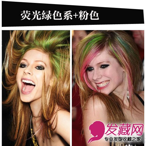 近年,艾薇儿逐渐迷上各式挑染,出镜率最高的无疑是她的荧光粉色挑染,不过最近,鹦鹉绿色成为了艾薇儿的时尚新鲜牌。之前一成不变的金色长发,靠的就是这样五花八门的出挑颜色加持,荧光绿再加粉色,惹眼得让人心动,不得不说,艾薇已经领衔了新一季的发色潮流。