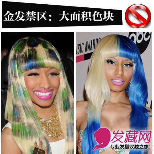 爱在头发颜色上做文章的基尼·米纳什大胆出位的挑染发型,咋一看很有蟒蛇出动和gaga出行的架势。如果你不是顶级潮人,那么这种夸张的发色在平时千万不要轻易尝试,太过于高调的染发,只会让你显得更加没品位。