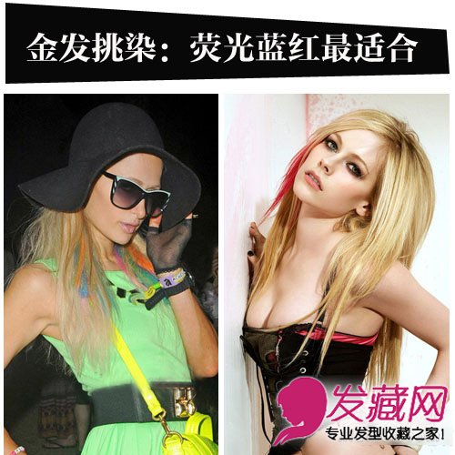 如果你原本的主发色是黄色或是较浅的金色系列,那么建议你尝试在发梢,点缀跳跃的粉色和蓝绿色,这样的造型十分具有热带的奔放感,当然,这时的蓝和粉都尽量要选择艳丽一些的,这样才能和浅色发系映衬出视觉美感。