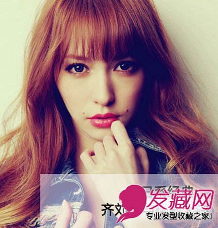 微微过眉的长度最能体现可爱气质,搭配具有领款感的长卷发使整体造型可爱度剧增。不论是齐刘海还是长卷发,都是能够很好的修饰脸型的发型,想要追求立体小脸的女生一定不要忽视对发型的打造。