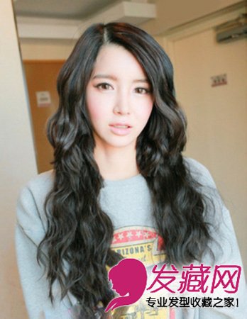 侧分的长款蛋卷头发型,黑色的蛋卷头显的皮肤白皙红润。这种长长的发型,是不是非常的有女神范呢?