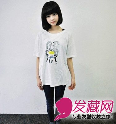 齐刘海的中短发发型,非常可爱的一款短发发型。不但衬显人特别的瘦,还非常的显嫩减龄呢!想要一款瘦脸发型,那么这款绝对很适合你。