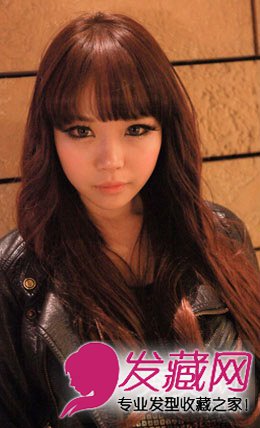轻薄齐刘海长卷发,是女生更有妩媚成熟的气质,深棕色染发经典而时尚不减。