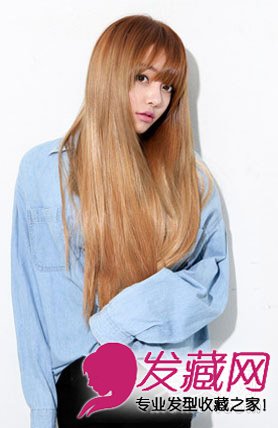 齐刘海长直发,搭配棕色渐变米棕色的染发,过渡自然的染发发色,彰显简约时尚感。