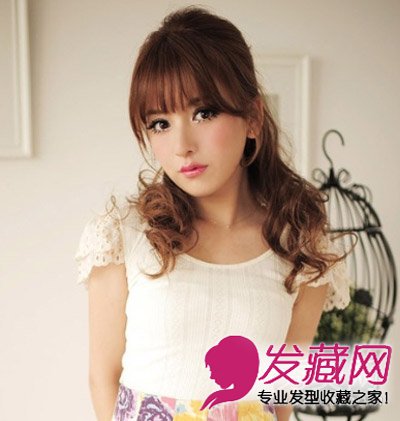 这款梳发发型首先给人一种十分优雅迷人的感觉,女生的俊俏的五官在齐刘海发型的衬托下展现出来,显得十分的美丽迷人,卷曲的发丝披散在肩上,打造出一种婉约的美。