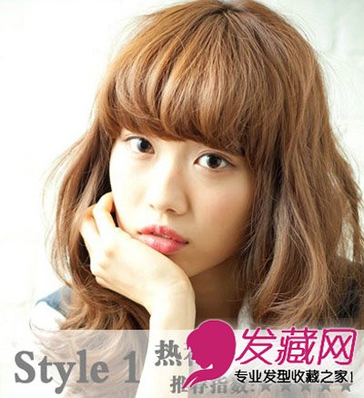 厚重感的展现体现在内扣刘海的打造上,造型十分经典。浅棕色的染发,温暖感十足。发丝的卷烫有了蛋卷头的蓬松度和卷度,增添了发量感。