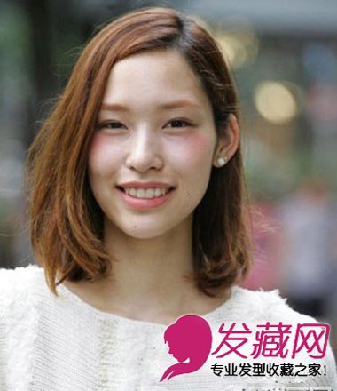 齐肩长发深度侧分,发量多的一侧自然垂散。对于发量稀少的美眉来说,仅仅染成亮眼的亚麻色发还不够,发梢部分利用卷发棒卷出内扣的效果,可以有效令发丝更显丰盈。搭配甜美的桃色妆容更显粉嫩。