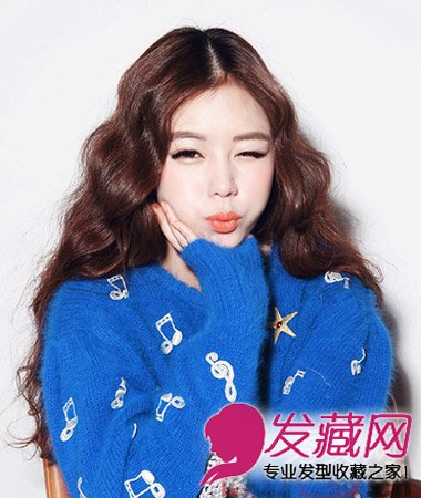 棕栗色的染发颜色,既增加了发型的时髦洋气感,又将女生的肌肤衬托的更加白皙红润,很适合甜美女生的一款发型,蛋卷头长卷发修饰小脸,显得很甜美可爱。