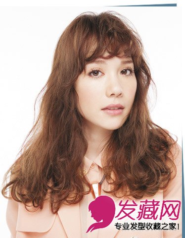 小编点评:卷发设计的蓬松刘海别致而个性,轻盈的长卷发覆盖在脸颊四周,让脸蛋上都充满幸福的棕色甜蜜。