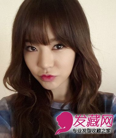 适合走淑女路线的MM们的一款长发烫发,蓬松感卷发空气感十足,自然萦绕胸前,搭配长斜刘海修颜,很有知性韵味。