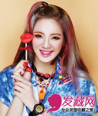 渐变色系的挑染也是时尚MM造型的必备元素,单调的染发已经无法满足女生的个性,披肩发配上红色系的挑染很是甜美个性,可爱的扎发发型也是扮嫩的一大秘诀。