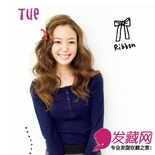 Point:这次红丝带是主角!它可以用来隐藏住耳朵,从而保持整体发型的柔软度。