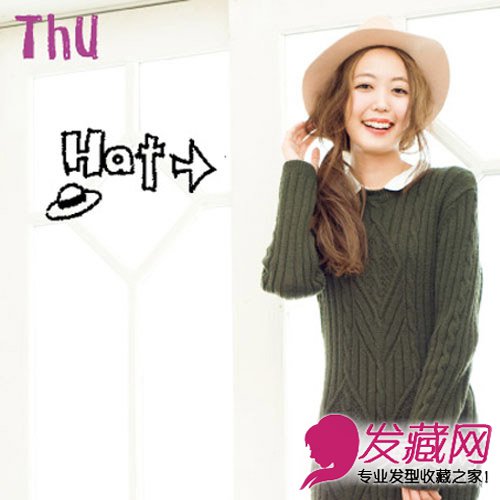 Point:佩戴的帽子帽檐要比较宽。微微散乱的头发是突显女人味的地方。