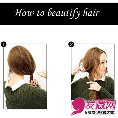 1.所有的头发梳到一侧,在下面离耳朵约5厘米的地方扎起来。让部分松散的头发留在另一侧。