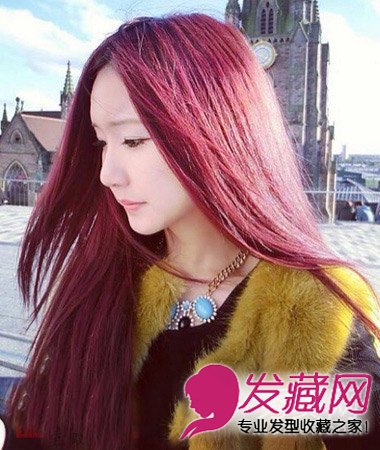 喜欢韩流时尚的MM们不可错过的一款染发设计,酒红色的染发长直发,飘逸的御姐范热中分直发搭配这款染发色更显时尚减龄。