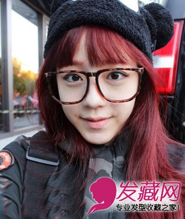 很多知性OL心水的一款酒红色染发,时尚的长发烫发搭配这款染发颜色最是显性感成熟气质,搭配帽子和眼镜,时尚甜美。
