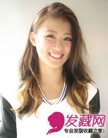 侧分而故意做的蓬松的刘海一下子将圆脸变成了鹅蛋脸,而发梢巧妙的挑染上几束黄色头发更显热情张力。