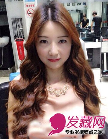 中分的刘海最能凸显精致的脸型,大波浪的卷发造型,散发着妩媚动人的气息,,棕色的染发颜色也是一大时尚亮点,想要成为一个成熟的大美女就千万不能错过这款蛋卷头造型哦