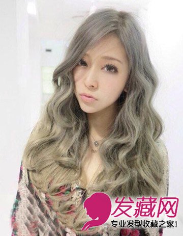 个性前卫的银白色染发颜色,使整个造型凸显出一股非主流的潮流美,偏分的长卷发修颜又显时尚,很潮的一款蛋卷头发型呢。