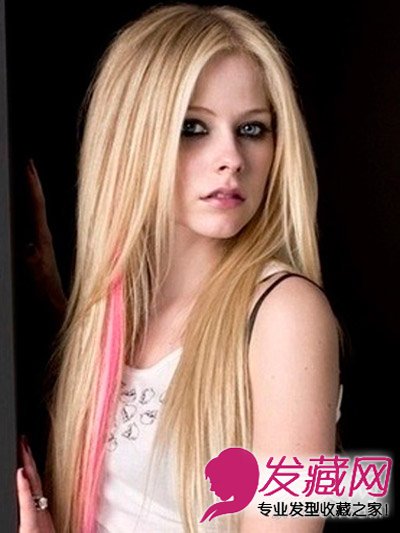 红色系颜色的挑染有着极高的人气。摇滚歌手艾薇儿向来是朋克范的,一缕粉红色的挑染+标志性烟熏妆,不夸张但又个性十足。