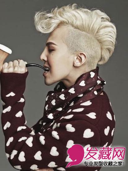 炫酷个性感十足的白金色头发是韩国潮男们的最爱,霸气的侧剃在GD的演绎下动感个性。