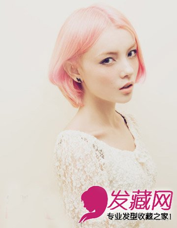 很值得尝试的一款一款淑女短发发型,在粉色的发色的衬托下凸显出时尚的潮人的特质,同样是中分发型彰显出来的效果也是不一样的。
