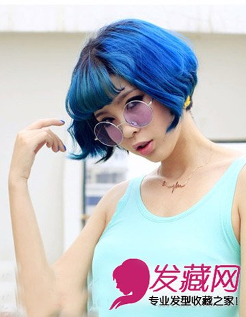这一款是属于日本原宿风的染发颜色,极具夸张个性,一款深蓝色的发色与个性的短发烫发结合起来尽显气质,略带挑染的感觉更显得潮流十足。