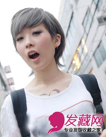 一款女生短发发型,超个性的亚麻灰色染发,不仅可以衬出雪白的肤色,而且整个造型搭配上短发颇有一种中性风的个性。