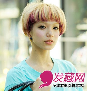 可爱的蘑菇头造型,融合了红色,亚麻色与粉色在种颜色的染发颜色,不仅有个性而且整个造型凸显出一种时尚的气质感,可爱中不失气质。