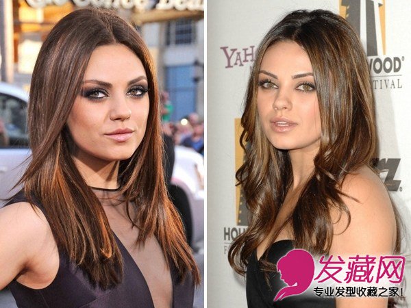 以Mila Kunis的咖啡发色再带点挑染,在经典中求变化,是不会太出错的发色范例。