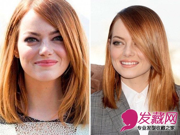 Emma Stone色调较浅的蜂蜜红发色相当亮丽,对于喜欢红色却害怕大红色会显老气的人而言会是很好的参考范例。