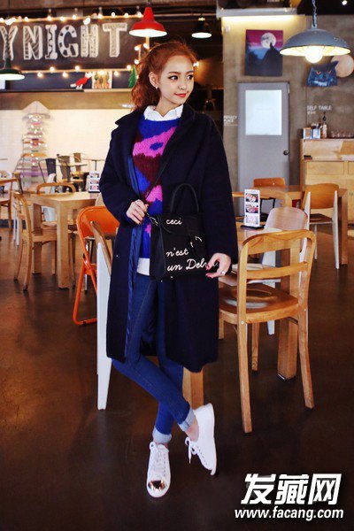 棕色系的染发一直被赞是女神必备的染发颜色,而深棕色更是甜蜜和时尚的必备款,这样一款深棕色的染发发型,扎成高马尾很显甜美气质,搭配亮色毛衣格外俏皮。