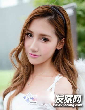 气质的长卷发打造出无比的水灵气质来,不以称的优雅偏分加上发饰的点缀显露出别致的时尚感来,时尚的黄棕色染发甜美显肤白。