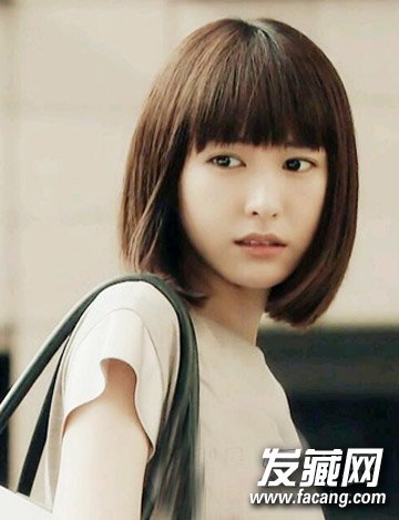 这款专属于文艺女青年的波波头发型,似乎是不加修饰的齐刘海短直发造型,平整的发梢,呈现出干净柔美的气质,而亮点还在于棕栗色的染发,亮眼又减龄。