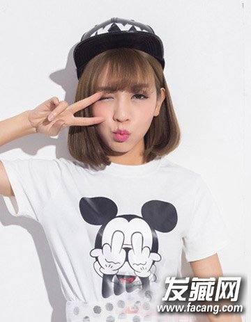 清新自然的直发造型可是最显女生的可爱甜美风的了,而配合清新的空气感刘海与时尚的棕色染发相搭,简单的中短发造型设计更添女生的活泼气质感,而且还有明显的修颜效果哦。