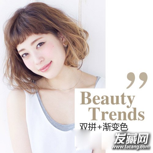 碎短齐刘海勾勒了精致的脸部轮廓,而深棕色和浅棕色的渐变色造型,充满了魅惑感。