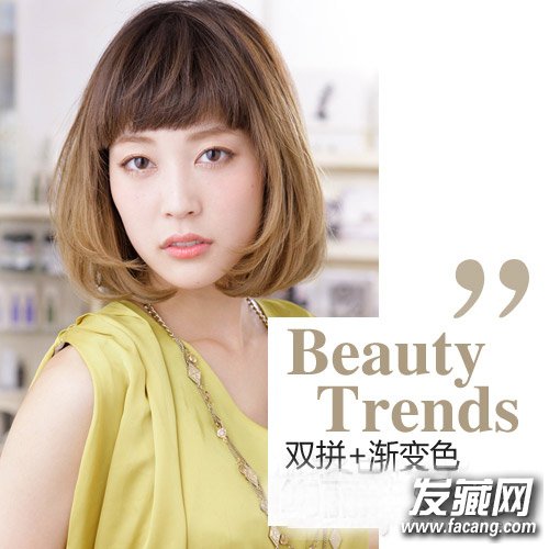这款超个性波波头,深棕色加上黄色的渐变色染发,令整个造型非常的突出。