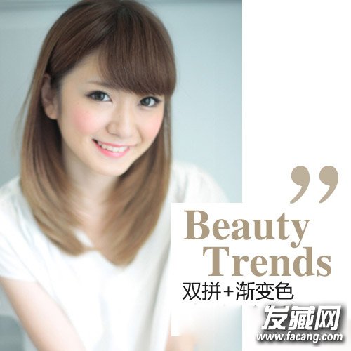 内扣刘海中直发修饰了脸型,奶茶色渐变色染发,使整个造型都透露出时尚的潮流感。