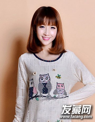 一款可爱甜美风式的时尚女生齐肩卷发发型,对大卷的烫发发型不感兴趣的妹纸们可以来看看这款简单而清新的发梢内扣卷发设计,再配合空气感刘海与栗色染发更是甜美吸睛。