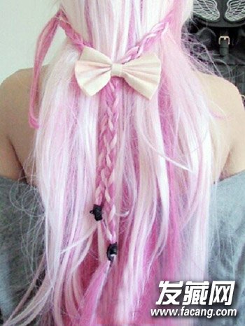 萌妹纸们最爱的一款淡粉色系挑染发型,长直发漂白,搭配粉色挑染发,扎简单的半披肩公主头发型,点缀发饰纯美清新。