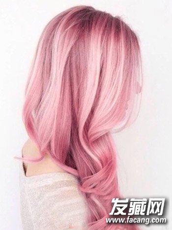 适合卷发MM打理的一款女人味披肩卷发,大波浪卷烫发飘逸,自然蜷曲的发卷很有发量感,搭配粉色染发甜美清新。