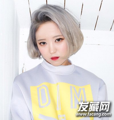 浅灰色的染发凸显了个性十足的一面,侧分刘海同样很好地修饰了瓜子脸,而高高拱起的刘海顶部和鲜红的唇色都增添了几分帅气!